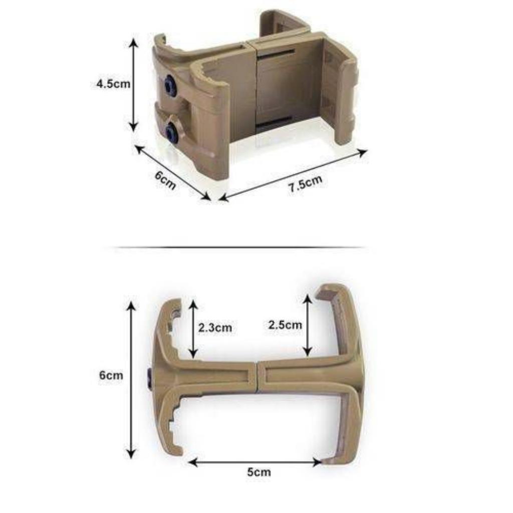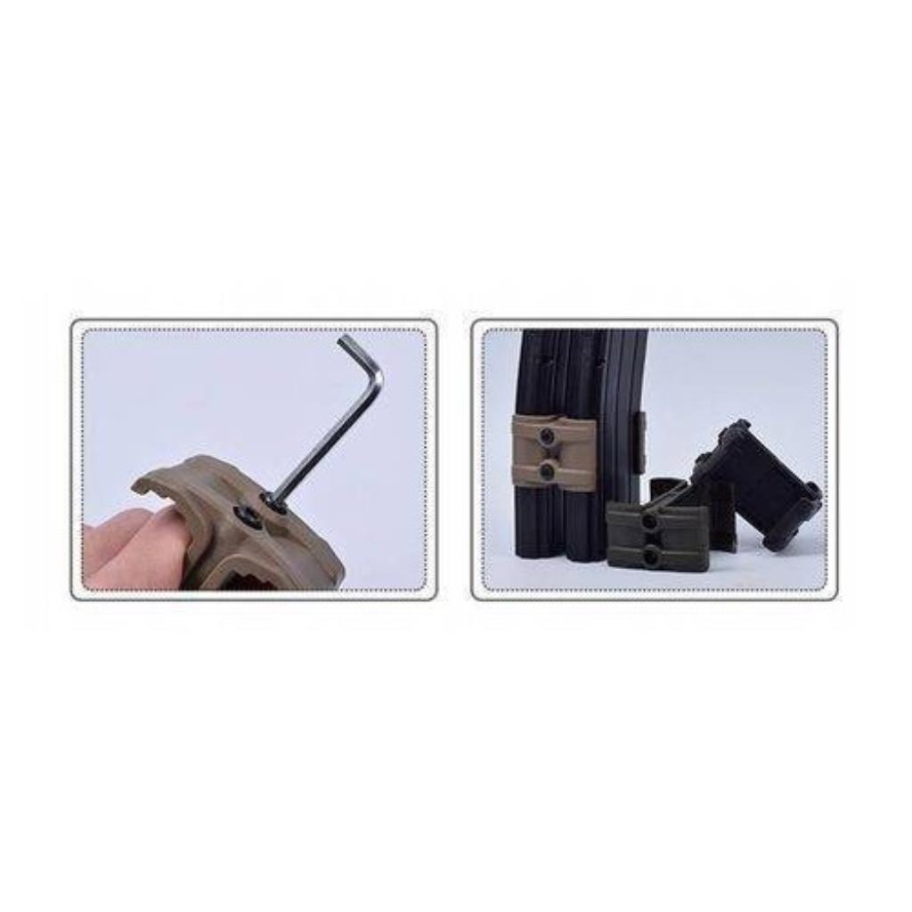 O adaptador FAST MAG clipe de magazine tem como função fixar 2 magazines para facilitar a troca (muito mais rápido!) e aumentar a capacidade de munições.