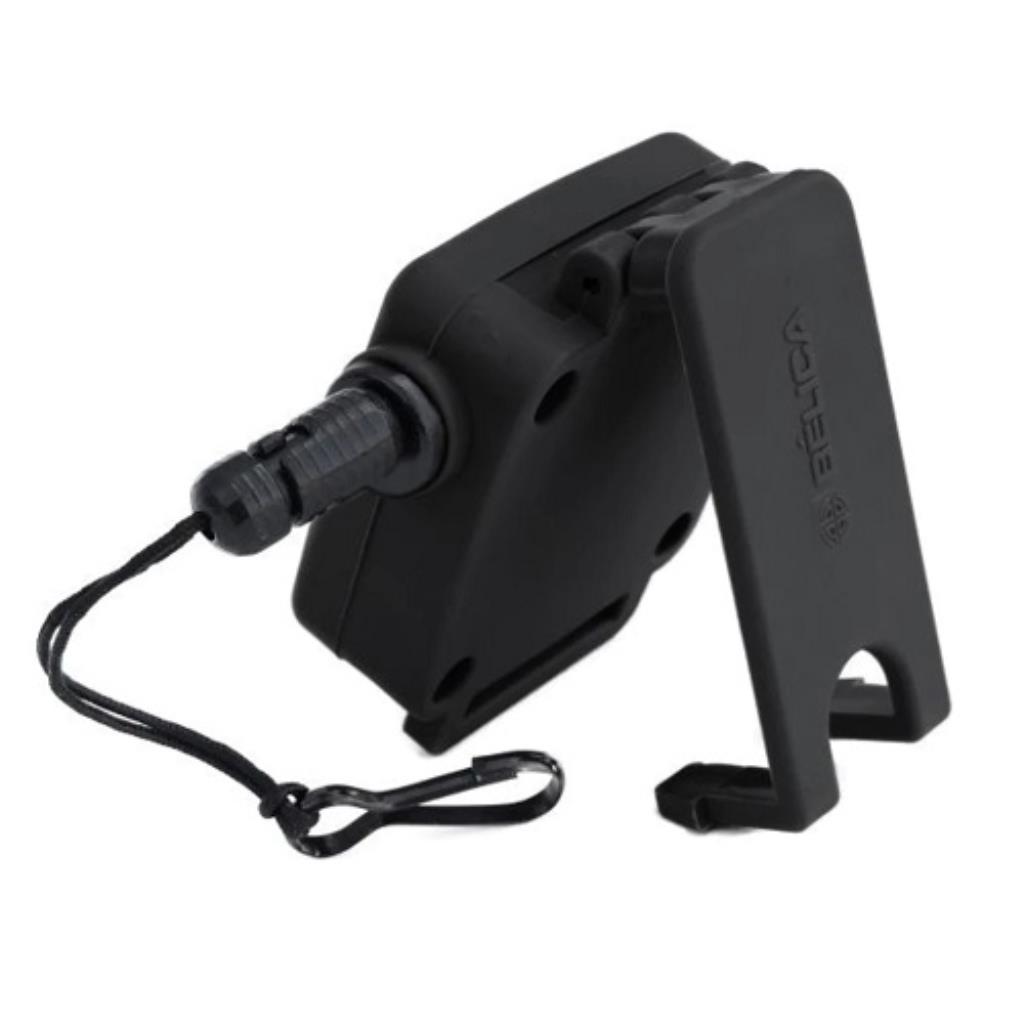 Este é um equipamento indispensável para a segurança da sua pistola ou revólver, mantendo a arma sempre próxima ao corpo do usuário, evitando a queda ao solo. É fabricado com nylon injetado para dar mais resistência ao produto, com um gancho na ponta do cordão para prender a arma com segurança. Possui trava para prender o fiel retrátil ao cinto, e um limitador acoplado no cordão para travamento do mesmo em caso de queda da arma. A trava secundária permite que a arma seja retirada do fiel, permitindo que o mesmo fique fixado em sua base. É utilizado por segurança pública em geral, proporcionando segurança e conforto para sua missão.